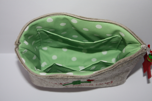 In die Tasche geht richtig was rein. Egal ob man sie als Medikamententasche, kleine Wickeltasche oder als kleine Kulturtasche für Kurzreisen nutzen möchte. Damit der Inhalt vor Wärme und Kälte geschützt ist, ist sie mit Thermolan gepolstert. Innen ist die Tasche aus beschichteten Leinen, also auswaschbar und hat zusätzlich eine zweigeteilte Innentasche.