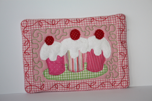 Diese MugRug wurden mit einer Stickdatei von Der Stickbär sehr aufwendig gefertigt.